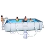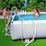 Каркасный бассейн Bestway 56255 - устанавливается на ровную поверхность, при этом никакой специальной подготовки грунта не требуется, после купания воду можно слить через обычный поливочный шланг. Каркасный бассейн Bestway 56255 имеет средние габаритные размеры, выполнен в форме прямоугольника, прекрасно подойдёт для отдыха на природе семьи с несколькими детьми. Каркас бассейна изготовлен из прочных стальных трубок, чаша из трёхслойного, износостойкого материала, с внешней стороны форму бассейна поддерживают стальные подпорки. Очистка воды в каркасном бассейне 56255 производится с помощью песочного фильтрующего насоса, в качестве фильтра используется кварцевый песок, он задерживает мусор и очищает воду от грязи, сбоку каркаса крепится усиленная металлическая лестница.