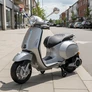 Детский мотоцикл M 6288 EL-11-2 скутер Vespa, 2 мотора, серо-черный