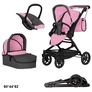 Коляска для куклы Carrello Magia 9636 Pink розовая 3 в 1 с сумочкой