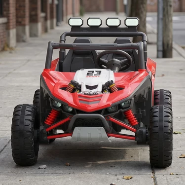 Двухместный детский электромобиль M 6373EBLR-3(24V) красный - выполнен в виде двухместного багги, который с первого взгляда привлекает внимание своим реалистичным дизайном, создавая ощущение настоящего внедорожника, при этом сочетая высокое качество материалов, комфортную посадку и функциональность, которая делает каждую поездку настоящим приключением для ребенка.