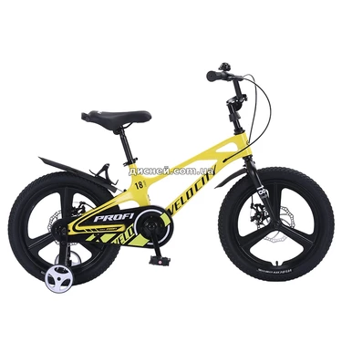 Детский велосипед Prof1 Velocity 18д. MB18VCB yellow желтый - рассчитан на детей от 5 лет и оснащен 18-ти дюймовыми колесами, которые обеспечивают хорошую устойчивость и плавность хода, а для тех, кто только учится держать равновесие, в комплекте предусмотрены боковые страховочные колесики, благодаря чему ребенок сможет постепенно освоить навыки езды без лишнего стресса и быстрее почувствовать уверенность за рулем.